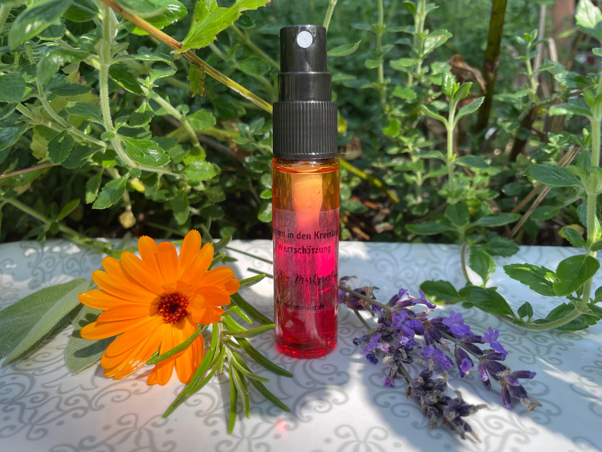 Für jedes Spray habe ich Pflanzen ausgewählt, die genau diese Wirkung unterstützen. Ich habe sie als Hydrolat, Sud oder Mazerat mit Quellwasser vorbereitet und mit reinen ätherischen Ölen ergänzt. Als Basis nutze ich Alkohol, damit die Essenz haltbar und stabil ist.